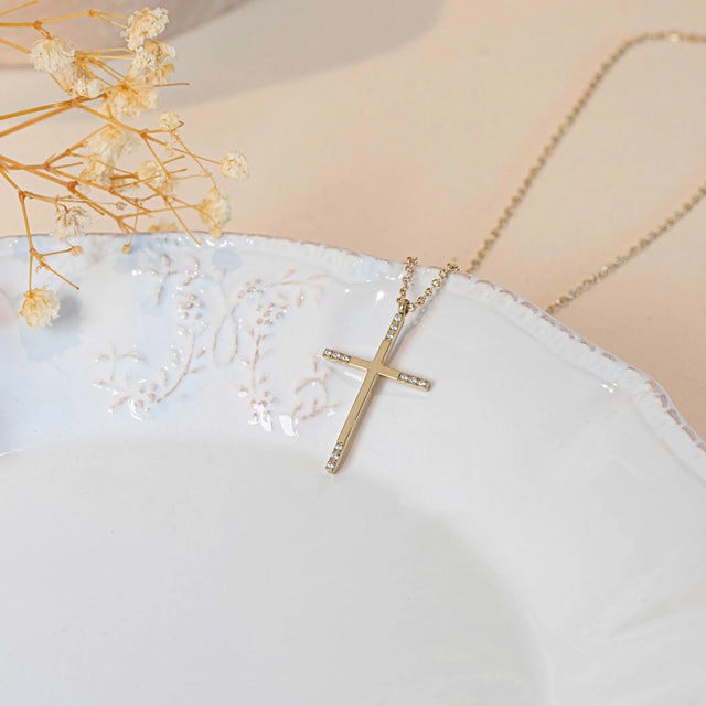 Collier croix chrétienne zircons en acier inoxydable or pour femme