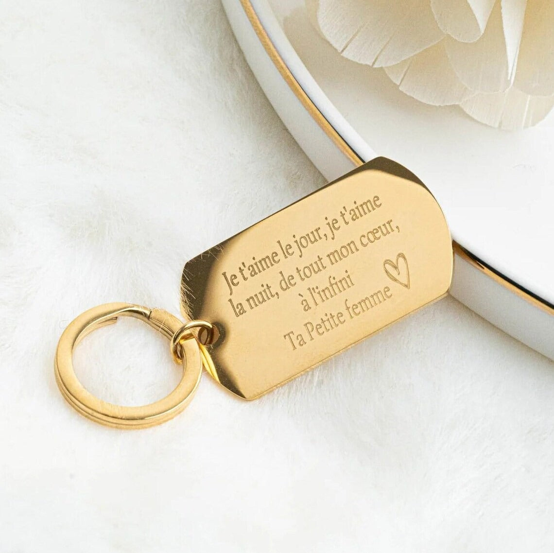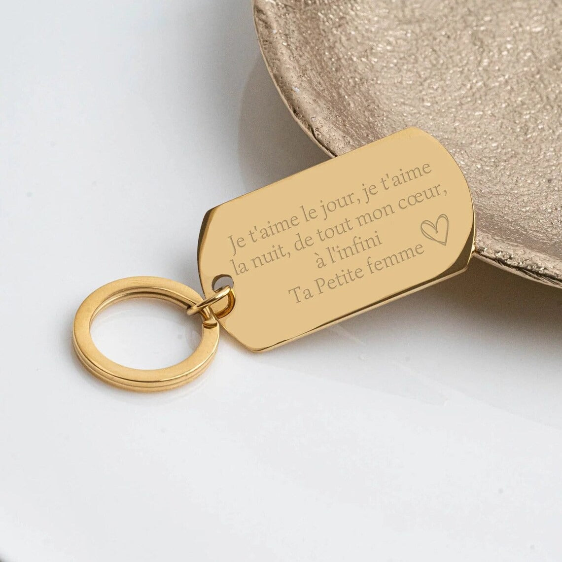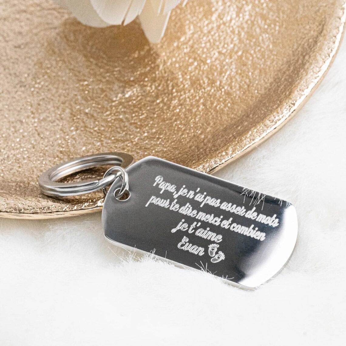 Créez un porte-clés unique qui vous ressemble ! Notre porte-clés personnalisé gravé combine style et fonctionnalité. Chaque pièce est gravée avec soin selon vos souhaits, transformant un accessoire quotidien en objet personnel et mémorable. Parfait comme cadeau significatif ou pour marquer votre propre style. Durable et élégant, ce porte-clés accompagnera vos clés avec distinction. Personnalisez-le dès aujourd'hui et portez votre identité au quotidien.