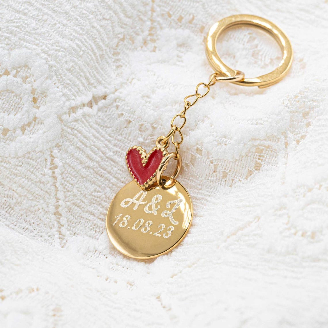 Exprimez votre affection au quotidien avec ce porte-clés personnalisé gravé d'un cœur. Parfait pour offrir ou pour vous, ce petit accessoire combine utilité et émotion. La gravure délicate du cœur ajoute une touche sentimentale à votre trousseau, tandis que sa taille pratique le rend facile à transporter partout. Un cadeau mémorable qui rappelle chaque jour les moments précieux partagés avec vos proches.