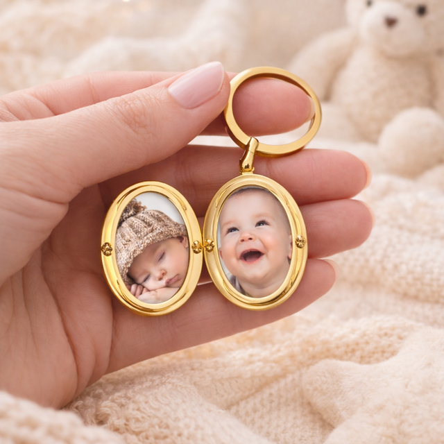Porte-clés photo personnalisé médaillon ovale motif fleur